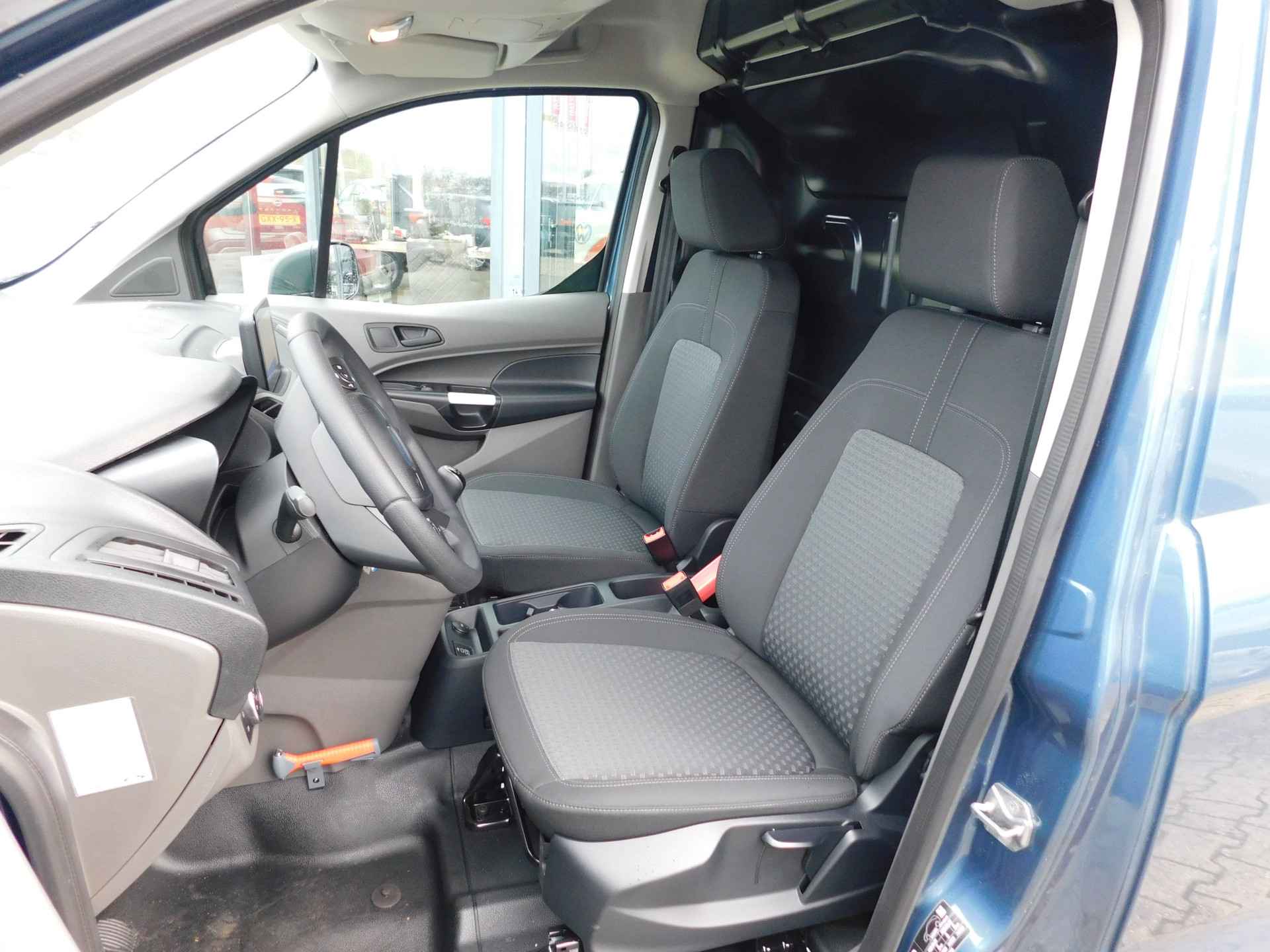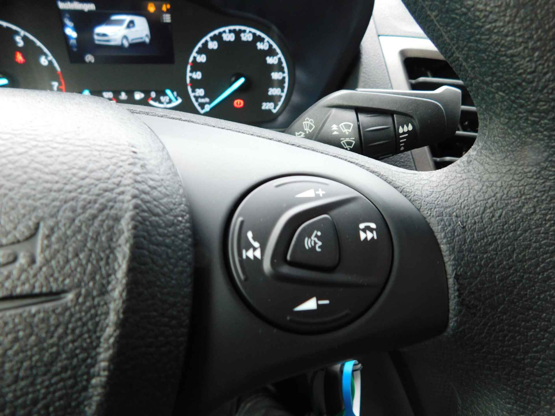 Nooit meer parkeerschade dankzij de achteruitrijcamera. Deze Ford Transit Connect is 'connected'. Belangrijke functies worden permanent gemeten en zijn uit te lezen via een speciale app, ook op afstand. Gemakkelijk en veilig is de spraakbediening voor het audiosysteem en het navigatiesysteem. Daarbij kunt u deze ook bedienen met de knoppen op het stuur. De audio-kwaliteit is geweldig, dankzij de DAB-ontvangst. De achteropkomend verkeer waarschuwing geeft een signaal als degene achter u te dicht op u zit. Ook handig en veilig bij het wisselen van rijbaan. In de zomer zit u ontspannen achter het stuur dankzij de ingebouwde airconditioning. Ook centrale deurvergrendeling met afstandsbediening, boordcomputer en verstelbaar stuur zijn aan boord.