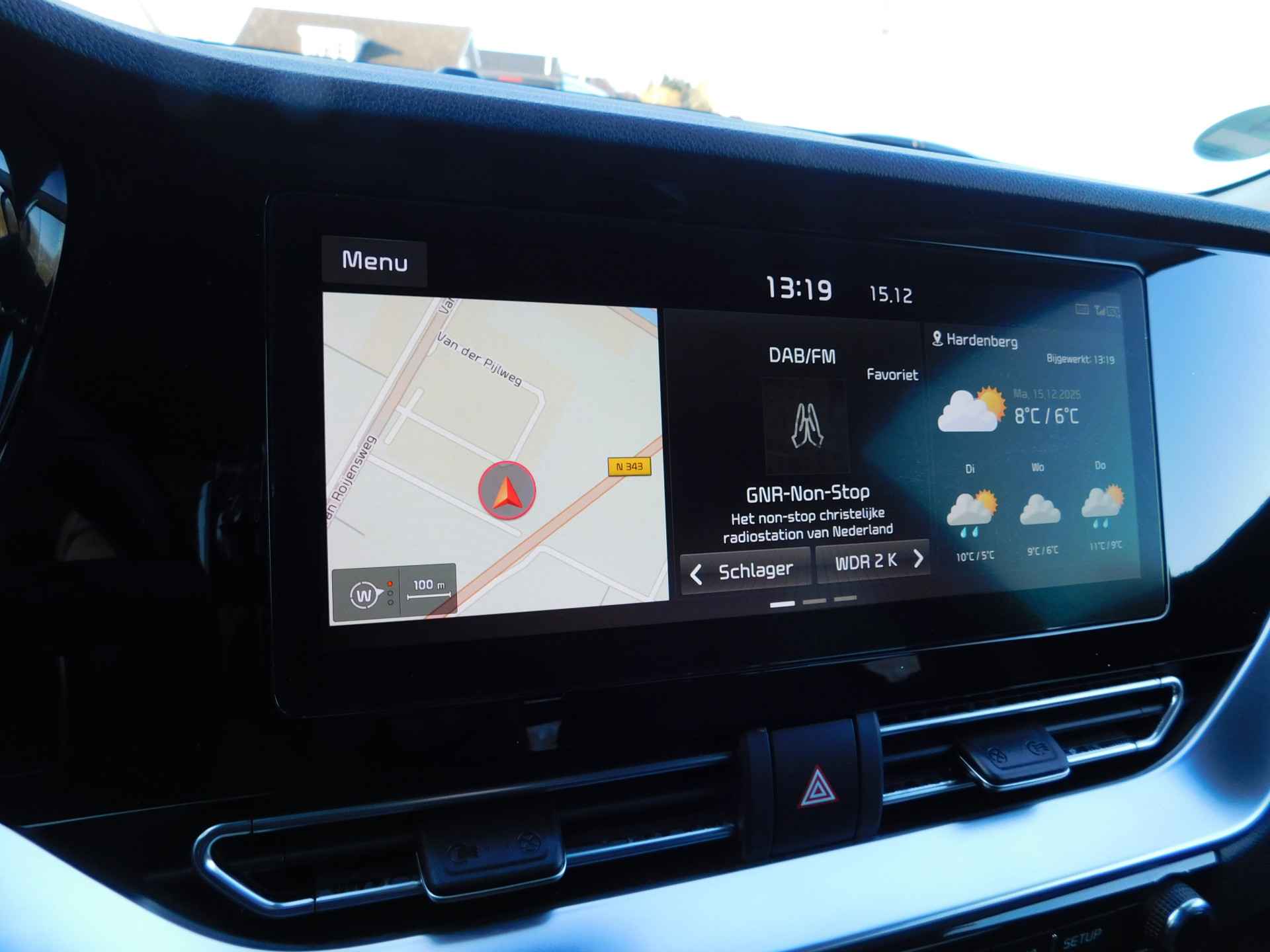 Afstand schatten bij het achteruitrijden? Niet nodig. U weet het precies, dankzij de achteruitrijcamera. Als u de adaptive cruise control inschakelt, regelt de auto zelf de snelheid en de afstand tot de auto voor u. Voor wie hoge eisen stelt aan geluid en akoestiek, is deze auto voorzien van een high performance audiosysteem. Het full map navigatiesysteem brengt u soepel en vlot naar uw bestemming. De automatische airconditioning zorgt voor een behaaglijk klimaat in de auto. De Kia is standaard voorzien van: schakelpaddles aan het stuur, draadloos opladen, DAB ontvangst, regensensor, keyless entry en automatisch dimmende binnenspiegel.